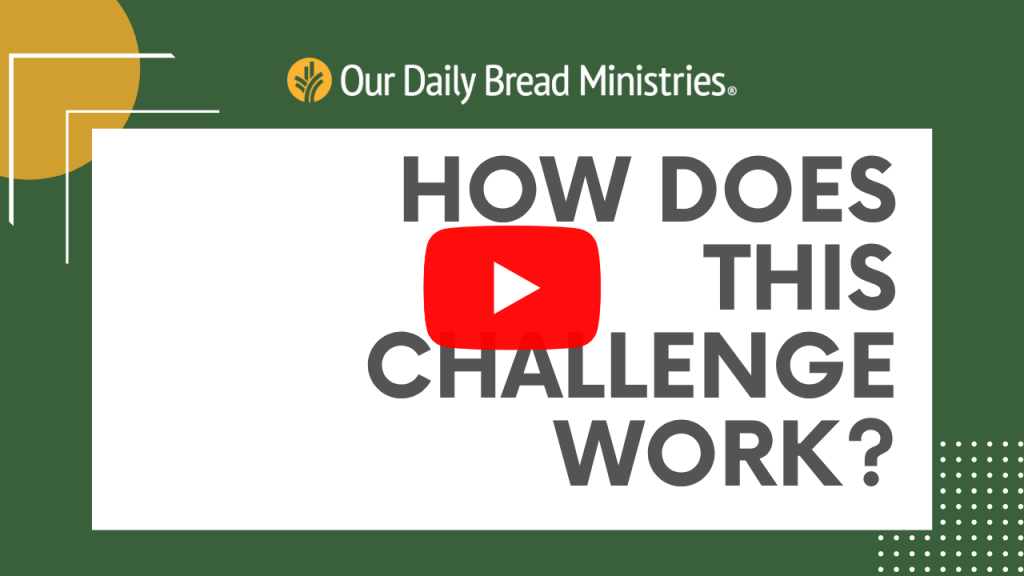 As a Bible-engagement ministry it is our earnest desire and responsibility to lead people closer to God through His Word. Since a challenge gives people a clear goal within a select time frame, we believe that this challenge and the mutual accountability of the faith-community of Our Daily Bread readers is the motivation you need to read God’s Word this year, cover to cover.