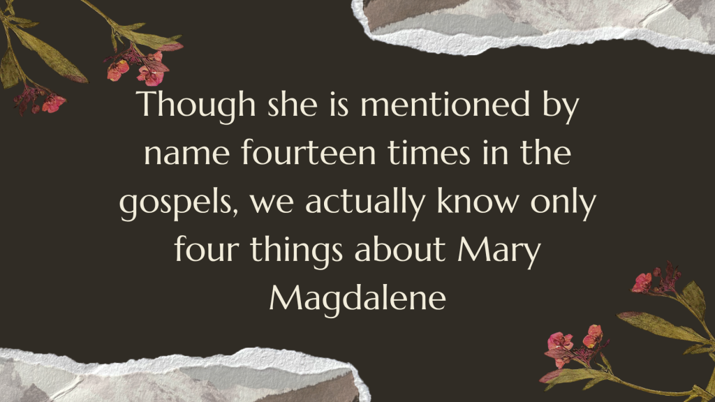Though she is mentioned by name fourteen times in the gospels, we actually know only four things about Mary Magdalene.