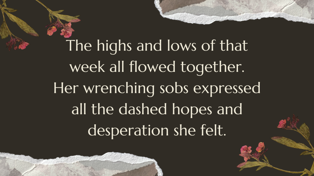 The highs and lows of that week all flowed together. She felt again the sting of contradiction as she remembered hearing crowds chant “Hosanna” one day and “Away with Him! Crucify Him!” only a few days later. Mary who had experienced that emotional rollercoaster now stood at the tomb, wrung out, devastated by the thought that, even in death, Jesus was violated. His body had been taken. Her wrenching sobs expressed all the dashed hopes and desperation she felt.