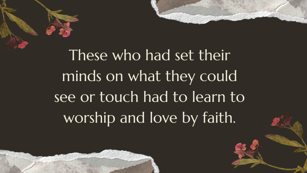 These who had set their minds on what they could see or touch had to learn to worship and love by faith. They could not cling to Jesus’ physical presence. They had to learn to relate to the Savior in a different way.